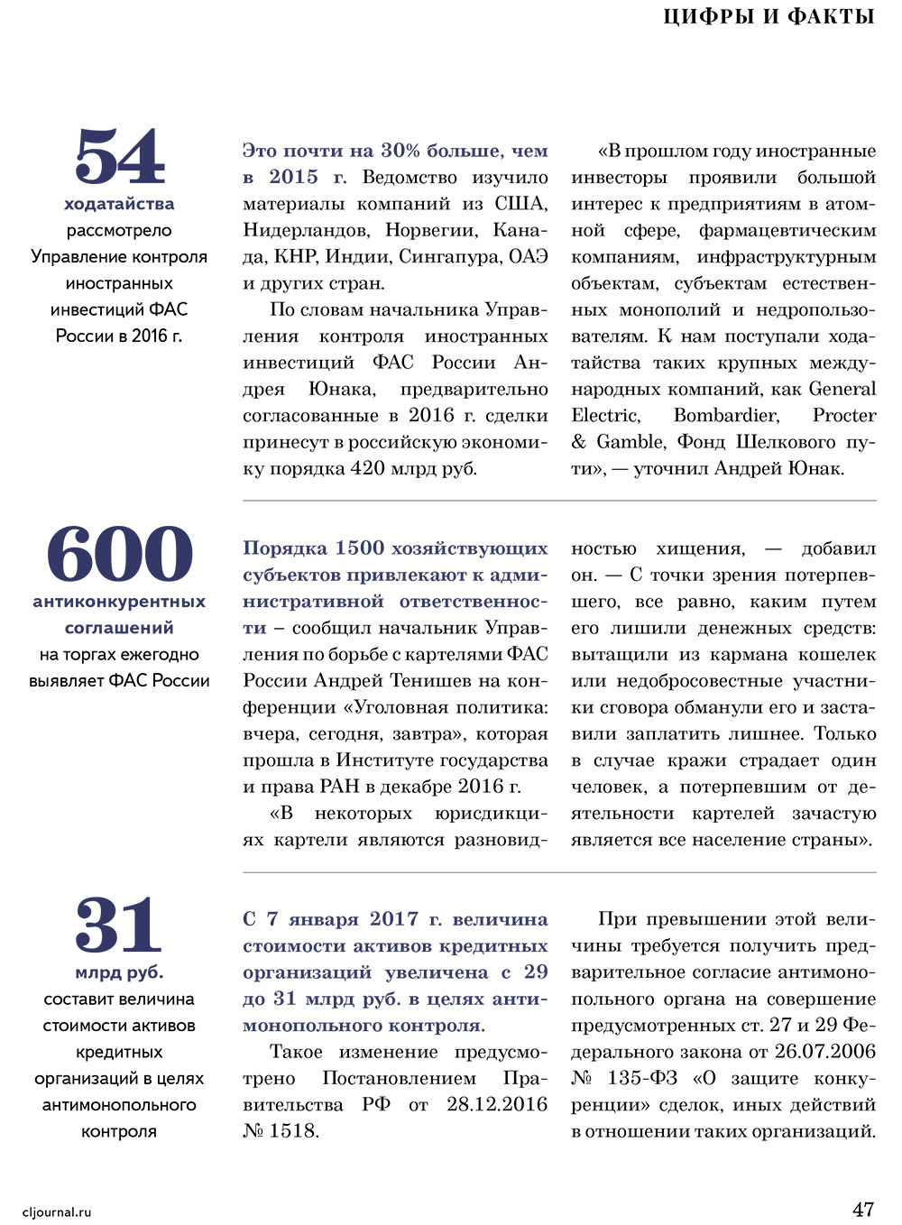 Цифры и факты. «Конкуренция и право» № 1, 2017 г.