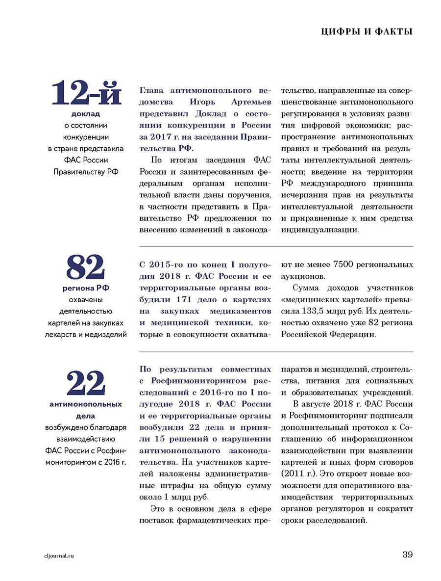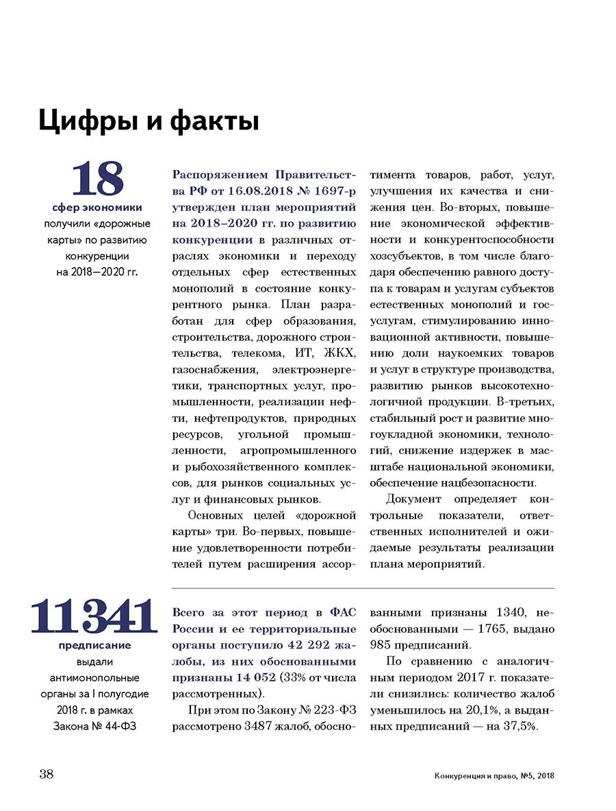 Цифры и факты. «Конкуренция и право» № 5, 2018 г.