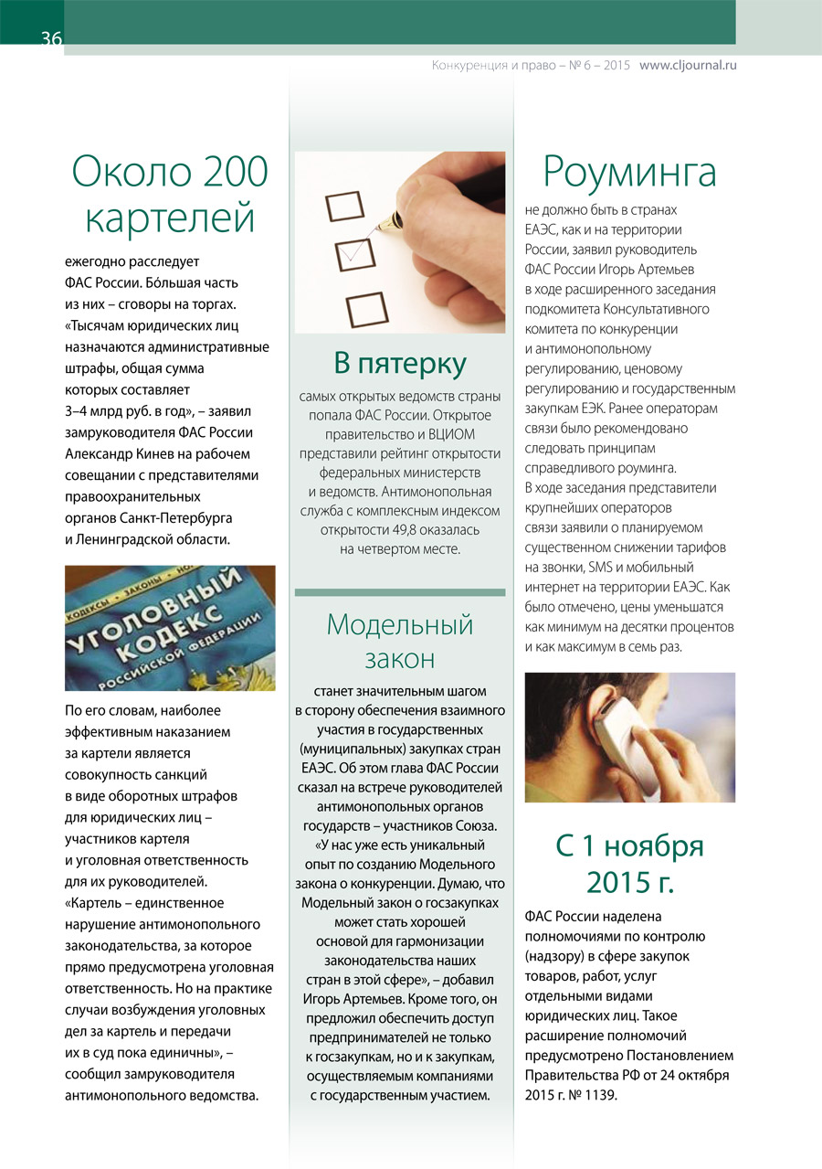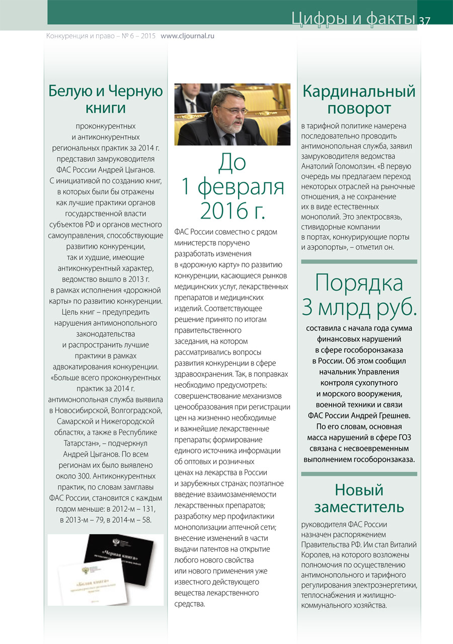 Цифры и факты. «Конкуренция и право» № 6, 2015 г.