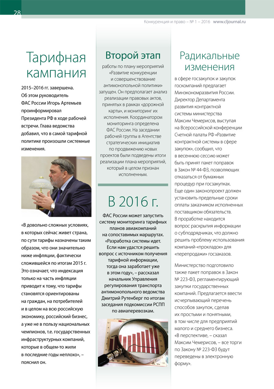 Цифры и факты. «Конкуренция и право» № 1, 2016 г.